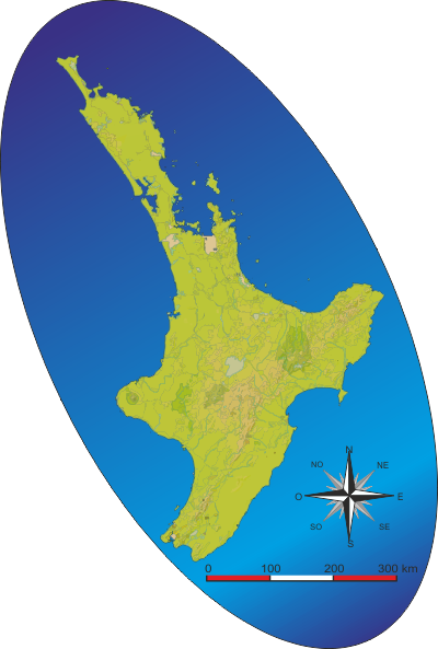 N.B. : Cette carte est basée sur l'île Nord, de la Nouvelle Zélande.